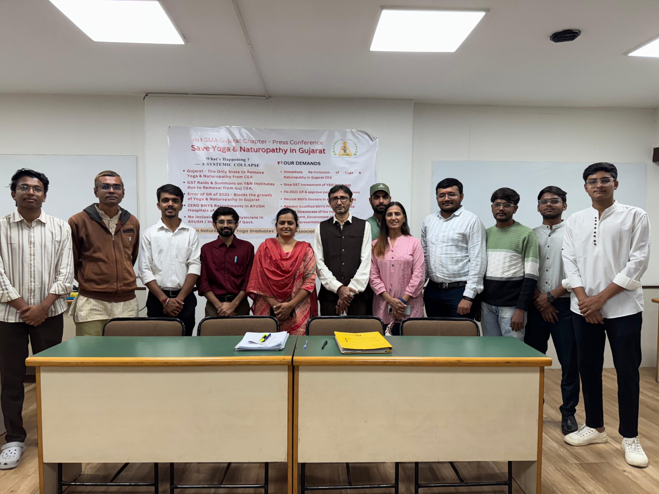 Vadodara — 17th November 2025 : The Indian Naturopathy & Yoga Graduates’ Medical Association (INYGMA), Gujarat Chapter, today raised serious concerns about state policy decisions that have placed the recognised medical system of Yoga & Naturopathy (BNYS) in Gujarat under severe threat.