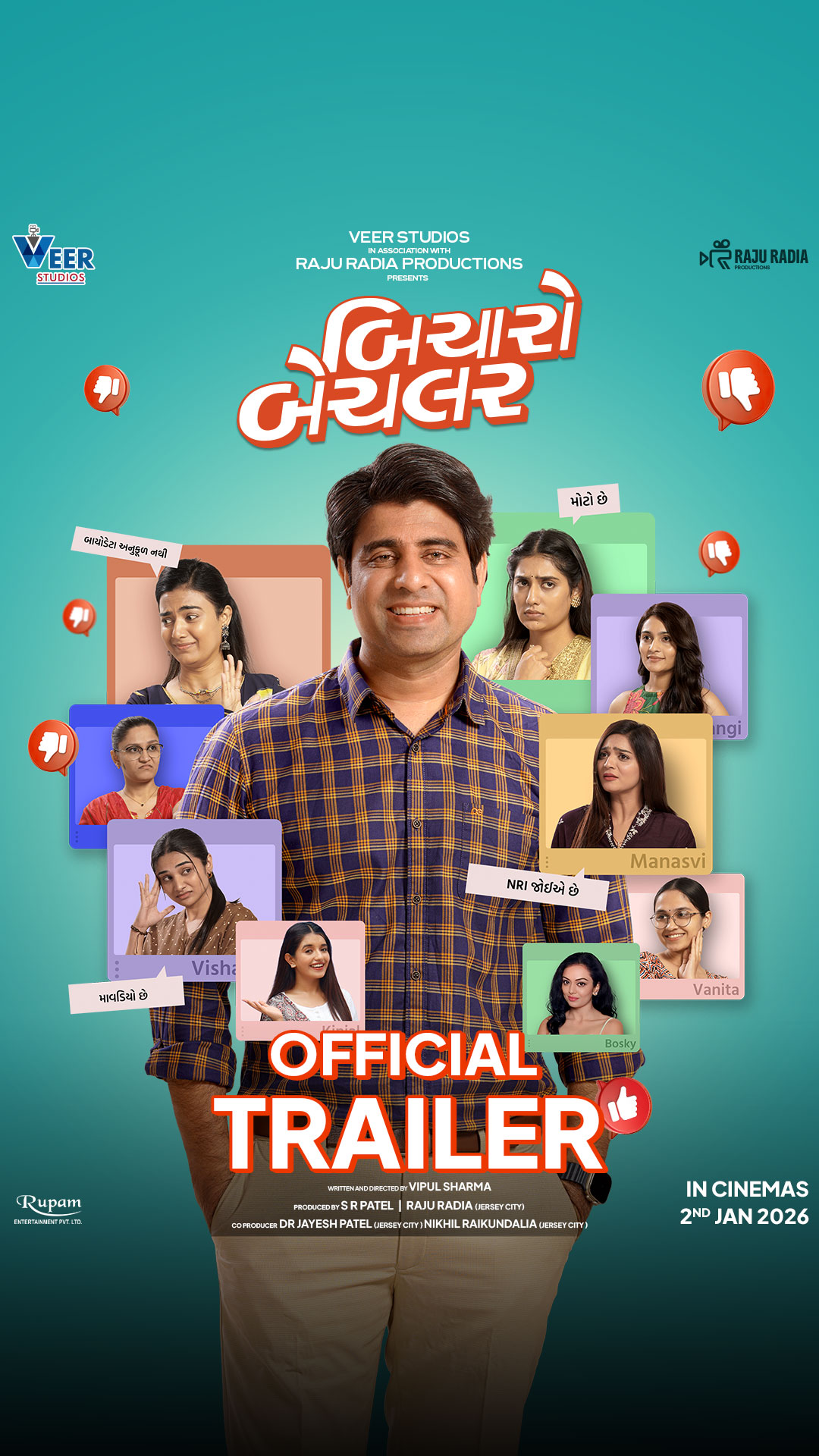 Bicharo Bachelor is all set to hit cinemas on 2 January 2026. With its perfect blend of humour, emotions, and clean entertainment, the film is expected to be a complete family entertainer for Gujarati audiences.